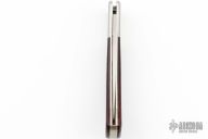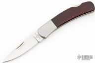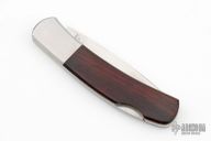 This Lockback by Katz features a mirror finished blade with nail nick. The handle is comprised of steel bolsters, cocobolo scales, nickel silver liners and steel backspacer. Excellent condition. Comes with original box.