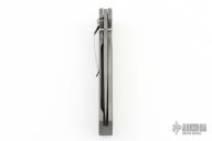 This MPF-1 by Mission Knives features a bead blasted tanto partially serrated blade with notched thumbrest and dual thumbstuds. Milled and bead blasted titanium frame with tip down titanium clip, lanyard hole at the butt. Has a couple light scuffs, otherwise excellent condition. Includes the original box.