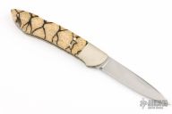 This lockback by CR Sigman features a handrub satin finished blade with nail nick. The handle has nickel silver bolsters and liners, coral scales, stainless steel backspacer. Nice lockup and blade seating. Has some light scratches, otherwise excellent condition.