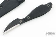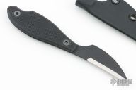 This Ditch Sakit by JB Knife and Tool features a black blade with .065" blade stock and .777" blade depth, full tang construction. The handle has black G-10 scales. Comes with a kydex sheath. Has some light scuffs, otherwise excellent condition.