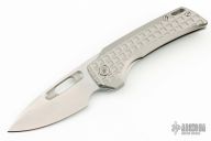This Nymble Framelock Flipper by EMP EDC features a stonewashed blade with notched thumbrest and flipper, and a thumbhole. The handle has a tumbled and frag pattern milled titanium frame, titanium backspacer and tip up clip. Comes with original box. Rides on bearings, nice detent, lockup and blade seating.  Excellent condition.