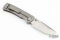 This Chaves Ultramar Redencion drop features a satin finished blade with the Chaves logo. The handle is made up of tumbled titanium, skull pocket clip (positioned for tip up carry), and a matching titanium backspacer. Blade is centered when closed, and locks up with no play. Comes in the original packaging with extra clip. Excellent condition.