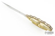 This Knuckle Fighter by Rob Dalton features a satin finished blade with .135" blade stock and 1.029" blade depth, full tang construction. The handle scales are a set of brass knuckles. Has some light scratches, otherwise excellent condition. One of a kind.