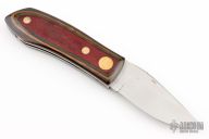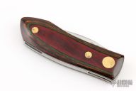 This Barry Wood Design swing lock folder features a satin finish blade and satin finish stainless steel frame with laminated wood scales with brass pins.