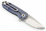 This Tailwhip V2 Mini Flipper by Direware Custom Knives features a two-tone finished blade with swede, notched thumbramp and flipper. The handle is comprised of an anodized titanium frame with a satin finished tip up clip. Has a couple light scuffs, excellent condition otherwise.