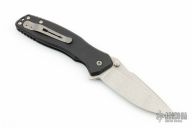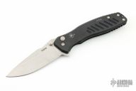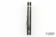 This PALLAS button lock from Spartan Blades features a tumble finished clip point S45VN blade with swedge, dual thumb studs, notched thumb rest and flipper. The handle has a milled and black anodized aluminum frame over stainless steel barrel spacers. Titanium tip up clip and lanyard hole in pommel. Excellent condition. Comes with original box.