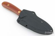 This K-5 King's River Skinner by Dozier Knives features a satin finished blade with .136" blade stock and 1.005" blade depth, full tang construction. The handle has natural canvas micarta scales with brass pins and lanyard hole. Comes with kydex sheath with belt clip. Has a couple light scratches, excellent condition otherwise.