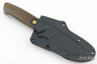 This KM-5 Bodyguard by Dozier Knives features a satin finished blade, .179" blade stock and 1" blade depth, full tang construction. The handle has green canvas micarta scales with black linen micarta insert, brass pins and lanyard hole. Comes with kydex sheath with belt loop. Has a couple light scratches, excellent condition otherwise.