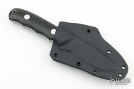 This K-9 Personal Utility by Dozier Knives features a satin finished blade, .125" blade stock and .863" blade depth. Full tang construction. The handle has black canvas micarta scales with aluminum pins and lanyard hole. Comes with kydex sheath. Has a couple light scratches, excellent condition.