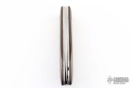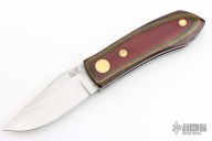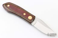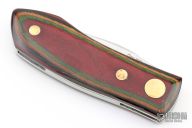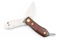 This Barry Wood Design swing lock folder features a satin finish blade and satin finish stainless steel frame with laminated wood scales with brass pins.
