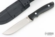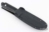 This KS-7 Wilderness by Dozier Knives has a satin finished blade with full tang construction, .199" blade stock, 1.071" depth, full tang construction. Handle has black linen micarta scales, aluminum pins and lanyard tube pin. Comes with kydex sheath. Has a couple light scratches, otherwise excellent condition.