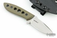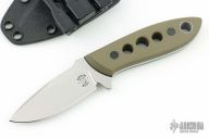 This TK-2 EDC by Tom Krein features a satin finished blade with false top edge, .137" blade stock and 1.070" blade depth, full tang construction. The handle has green G-10 scales with black liners and black pins, has lanyard hole. Comes with a kydex sheath with TekLok. Has some light scratches, excellent condition otherwise.