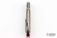 This Inkosi from Chris Reeve Knives features a tumble finished blade with dual thumb studs and notched thumbrest. The handle has a bead blasted titanium frame over a single barrel spacer with a matching titanium tip up clip. Canvas micarta Inlays.  Includes the Reeve's box, not original.  Excellent Condition.