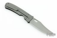 This Covert 6K folder by Tom Mayo features a Stellite 6K blade with a fine bead blast finish and thumbhole opening. The handle has a carbon fiber and bead blast titanium frame with titanium tip up clip, all titanium hardware. This knife is completely non-magnetic. Smooth action. Nice detent, blade seating and lockup. Comes with velcro case. Has a couple light scuffs, otherwise excellent condition.