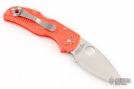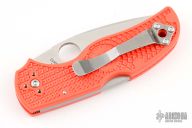 The fiberglass-reinforced nylon handle of this unique knife is injection molded in high-visibility orange—the signature color of Cutlery Shoppe Exclusives—and has a Bi-Directional Texturing™ pattern for a secure grip in even the most demanding conditions. It also houses a high-strength back lock mechanism that offers exceptionally smooth operation with either hand. Four sets of threaded inserts in the handle scales allow attachment of a stout pocket clip, supporting convenient left or right-side tip-up or tip-down carry.