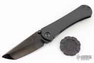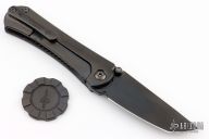 This SBTF by Borka Blades and Marfione Custom Knives features a DLC stonewashed chisel ground Tanto blade with dual thumbstuds. The handle has a carbon fiber and DLC stonewashed titanium frame with a matching tip up clip. Nice detent, lockup and blade seating. Comes with pelican case and metal COA dated 09/2021. Comes with HiTex chip. Excellent condition.
