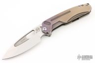 The all Titanium Infraction, by Medford Knife and Tool features a tumbled finished drop point blade with a recess and oversized thumbhole. The handle is composed of tumble finished and anodized titanium. The tip up carry pocket clip is composed of titanium. Smooth action and strong detent. Comes with original hard case and papers. Has some light scuffs, excellent condition otherwise.