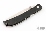 This Eagle Talon by Al Mar features a satin finished blade with false top edge and dual thumbstuds. The handle has black titanwood scales with lanyard hole, and steel rockerbar. Has some light scratches, otherwise excellent condition. Comes with original box, sheath, tool, and papers. Has some light scuffs, excellent condition otherwise.