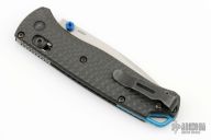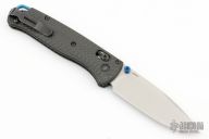The 535-3 Bugout knife is built with a carbon fiber handle and a satin finished blade with a plain cutting edge.