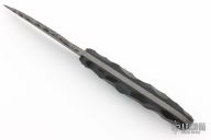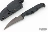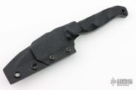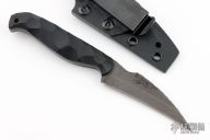 This fixed blade by Half Face Blades features a darkened blade with a full tang construction, .146" Blade Stock,  .826" Blade Depth. The handle has sculpted G10 scales with a lanyard hole.  Comes with a kydex sheath with belt clip, sticker and warrantee card. Excellent condition.
