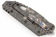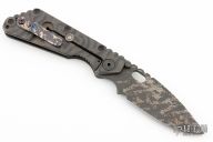 This SMF features a Digicam blade and a handle with black G-10 on one side and flame titanium on the other with matching tip up titanium clip. Notches on thumbrest, rear of handle, and lockup. Includes Hinderer "Lock Bar Stabilizer" for maximum reverse lock retention. Has some light scuffs, otherwise excellent condition.