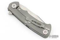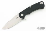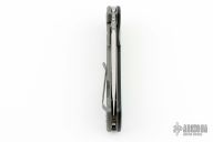 This Project X Flipper by Rick Hinderer Knives features a stonewashed blade, notched thumbrest and flipper, dual thumbstuds. The handle has a black G-10 scale, and working finished titanium frame with matching clip. Nice lockup, seating, and detent. Comes with original box and extra hardware. New Condition.