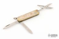 This Small Swiss Army knife has been customized by Tiffany & Co. with sterling silver covers. Has some patina and scratches, otherwise good condition.