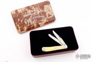 This knife features mirror polished blades with "2003 Collector's Edition" engraved on the escutcheon. The handle has engraved nickel silver bolsters, yellow scales, brass liners and stainless steel springs. Excellent condition. Comes with original box and papers.