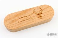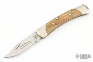 This Buck features a satin finished blade with nail nick. The handle has nickel silver bolsters with integral liners, wood inlays and stainless steel spring. Comes with original wooden display box. Excellent condition.