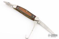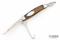 This knife features stonewashed blades with engraved main blade. Has a 12 and 20 gauge choke wrench. The handle has engraved nickel silver bolsters, dymondwood covers, brass liners and stainless steel springs. Excellent condition. Comes with original box.