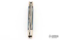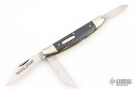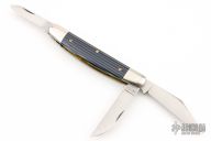 This 3-blade Maverick by Great Eastern Cutlery features three satin finished blades with nail nicks and false top edges. The handle has nickel silver bolsters, acrylic covers with nickel silver escutcheon, brass liners, and stainless steel springs.  Comes with original tube and wax paper. Excellent condition.