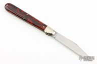 This knife by Great Eastern Cutlery features a satin finished blade with a single nail nick. The handle has nickel silver bolster, escutcheon and brass liners, Red River Acrylic covers. Has half-stop. Comes with original tube, and wax paper. Has some light scratches, excellent condition.  50 were made