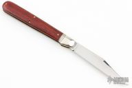 This knife by Great Eastern Cutlery features a polished finished blade with a single nail nick. The handle has nickel silver bolster, escutcheon and brass liners, wood covers. Has half-stop. Comes with original tube, and wax paper. Has some light scratches, excellent condition.