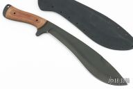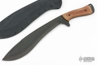 This Kukri by Mineral Mountain Hatchet Works features a black blade with false top edge and a full tang construction, .241" blade stock and 2.516" blade depth. The handle has brown canvas micarta scales. Kydex sheath. Has some light scuffs, otherwise excellent condition.