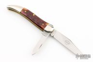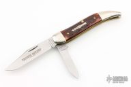 This knife by Great Eastern Cutlery features polished blades with nail nicks. The handle has nickel silver bolsters, Jigged Bone covers with a nickel silver escutcheon, brass liners/pins. Comes with original tube and wax paper. Has some light scratches, otherwise Excellent Condition.
