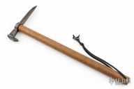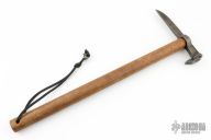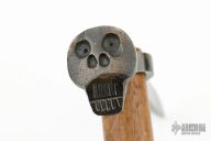 This Spike Hawk by Brian Forrest has a hand forged and blued railroad spike with a forged skull on the end. The handle is wood. Has a couple light scratches, otherwise excellent condition.