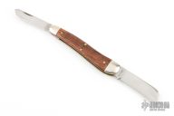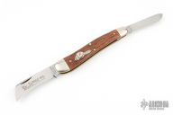 This knife by Great Eastern Cutlery features 2 satin finished blades with longpull and nailnick. The handle has nickel silver bolsters, escutcheon, wood covers, brass pins and liners with stainless springs.  Comes with original tube and wax paper.  Has some light scratches, otherwise Excellent Condition.