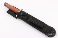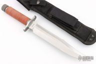 This SF-10 from Al Mar Knives is a large hollow handled survival knife with super sharp serrations on spine, .230" stock and 1.553" blade depth. Screw off handle cap and cord wrapped handle. Comes with a black nylon sheath with belt loop. Hard to find piece. Has some light scratches, otherwise excellent condition.  #200/200