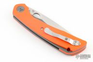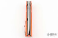 The Nati Amor designed Spyderco Subvert is a large folding knife revealed at Spyderco's 2018 Amsterdam Meet. This folder sports a clean, balanced aesthetic based on Nati's handmade Sabotage custom. It features orange G-10 scales over thick bead blasted titanium liners. Its blade has a satin finish, high flat grind, and a generously bellied edge. Add a unique Nati Amor design to your collection today! Features: A heavy duty titanium liner lock offers dependable blade lock up. Stainless steel clip for tip-up pocket carry. 3D textured G-10 handle scales provide a secure and comfortable grip. Has some light scuffs, otherwise excellent condition. Comes with original box and papers.