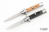 The Magnum Sicilian Needle is a classic Automatic Knife based on a historical design. The Stiletto has been the best-known Italian pocket knife for decades and was manufactured in the Maniago region as early as 1910. The 440A blade is automatically opened with the rich, world-famous clack by actuating the push button. The handle scales are made of dark plywood.
