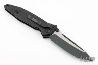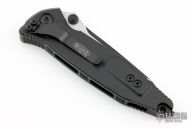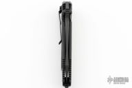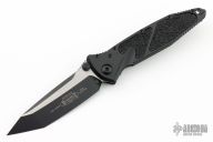 This Socom Elite manual linerlock folder by Microtech Knives has a two-tone black tanto blade with notched thumbrest and dual thumbstuds. Has a black aluminum handle with non-slip inlays, tip down black stainless steel clip and hardware. Serial number 12554 and dated 02/2023. Comes with original box and papers. Excellent condition.