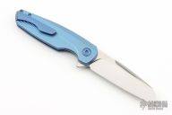 This Haptic by Holt Bladeworks features a tumbled blade with a notched thumbrest and flipper tab. The handle features a milled and anodized titanium frame with a titanium tip up pocket clip with hidden hardware. Nice detent, lock up and blade seating. Includes the original box. Excellent Condition.