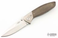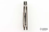This Nitro by Peter Carey features a satin finished blade with notched thumbrest and dual thumbstuds. The handle has titanium bolsters, green canvas micarta scales, bead blasted titanium liners, tip up titanium pocket clip. Nice lock up, blade seating and detent. Has a few light scratches, otherwise excellent condition.