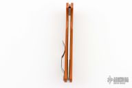 This Native Chief takes the time-tested design of the original and stretches it out to create a longer and slimmer profile with even more cutting performance. Burnt Orange G-10 scales and a full-flat ground Rex 45 steel blade solidify the design. Textured G-10 handle scales are backed up by a precision-machined lockback mechanism. 4-position pocket clip allows for fully ambidextrous tip-up or tip-down carry. New condition. Comes with original box and papers.
