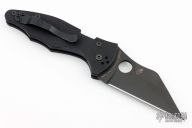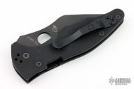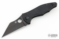 This Yojimbo 2 by Spyderco features a black finished wharncliffe blade with thumbhole. The handle has a black G-10 frame with stainless steel liners, lock is on the spine of handle. 4-way reversible stainless steel clip. Nice detent, lockup and blade seating. Comes with original box and papers. New condition.