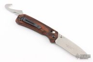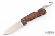 The Hunting line of knives from Benchmade is new for 2014. The 15060-2 Grizly Creek folding knife features a thumb stud opener and AXIS Lock along with a folding gut hook. The drop point blade has ambidextrous thumb stud openers for easy access, and a tip-up pocket clip for easy carry. Made of CPM-S30V premium stainless steel, this knife is built to handle whatever you throw at it. Comes with original box, papers, and benchmade drawstring pouch. Has a couple light scuffs, otherwise excellent condition.