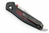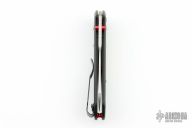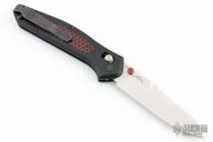This 940-1701 Osborne Axis Lock Folder from Benchmade has a tumble finished CPM-20CV clip point blade with false top edge and dual thumbstuds. Handle has black G-10 scales with red C-Tek inlays, red standoffs and black finished stainless steel tip up clip (RH/LH Reversible). Knife has centered blade seating and strong lockup. Comes with original box and papers. Has a few light scratches, otherwise excellent condition.