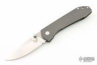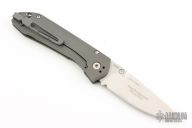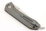 This 765 Mini Ti Monolock by Benchmade features a tumble finished drop pint blade with swedge, single thumb stud and notched thumb rest. The handle has a bead blasted titanium frame with matching tip up clip over barrel spacers. Lanyard hole in pommel. Has a couple light scuffs, otherwise excellent condition. First Production Run #199 of 1000. Includes original box and papers.
