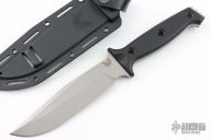 Shane Sibert designed this heavy-duty fixed blade for Benchmade. The Arvensis is a big knife that has a "light hand feel". The nearly 6.5" blade has a pronounced clip point profile and includes a large choil for choking up on. Contoured black G-10 scales are fastened to the full-tang 154CM steel blade with tube pins and straddle the fine line of comfortable grip. The Arvensis includes a Boltaron sheath with an innovative attachment feature.
