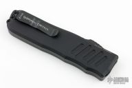 Add a state of the art OTF automatic to your rotation with the RECON-035 from Guardian Tactical. This RECON model is built with a black blade and a black anodized handle. Guardian Tactical's patented OTF mechanism provides smooth, responsive opening action. The unique thumb slide design is separated from the aluminum handle by a steel plate and 3 ceramic balls that eliminate grinding and wear. An innovative locking mechanism sits off to the side of the blade channel so it doesn't drag against the blade when opening and closing. These features eliminate the friction on the blade and button that have always plagued OTF knives. Take your OTF game to the next level with the Guardian Tactical RECON-035. Features: Anodized aluminum handle is compact and lightweight for durable everyday carry. Innovative OTF mechanism offers fast and smooth opening action for responsive tactical deployment. Item includes a stainless steel pocket clip for secure tip-down carry. Excellent condition.